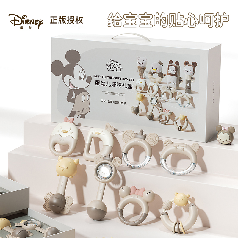 迪士尼婴儿礼物生娃月子新生儿见面礼盒宝宝满月百天牙胶安抚玩具