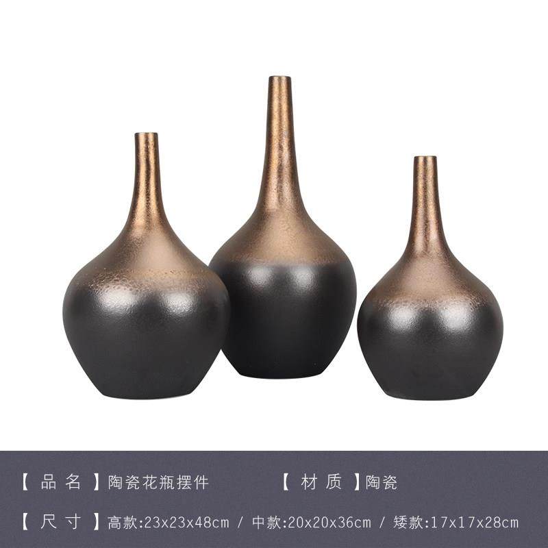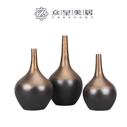 现代新中式创意花器陶瓷摆件样板房间干花瓶酒店展厅别墅软装饰品