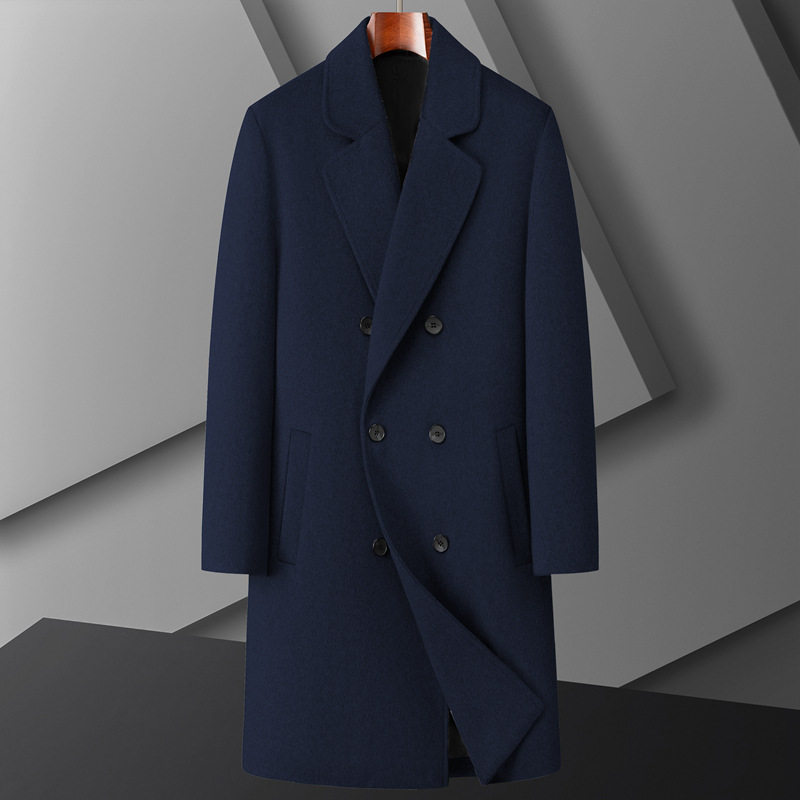双排扣男式大衣2025秋冬中长款青年商务单面呢羊毛保暖休闲厚外套