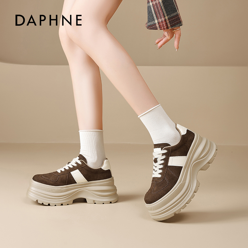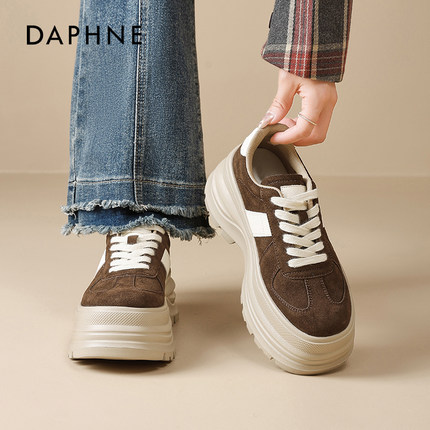 达芙妮棕色德训鞋女2025秋冬新款超厚底增高运动鞋美拉德复古板鞋