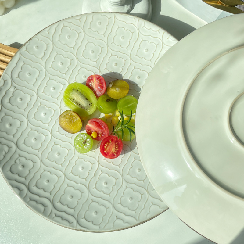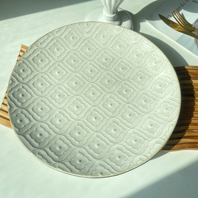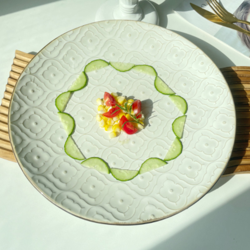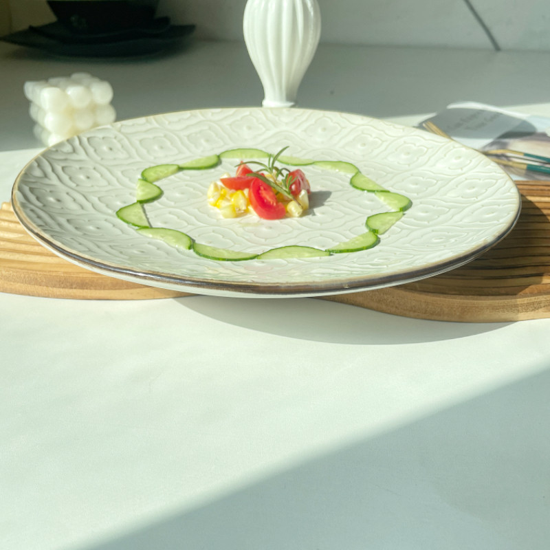 Ins复古浮雕大盘子菜盘家用西餐厅牛排盘水果盘意面盘商用瑕疵