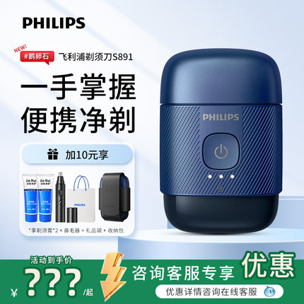 飞利浦便携剃须刀男士双刀头电动刮胡刀胡须刀送男友生日礼物