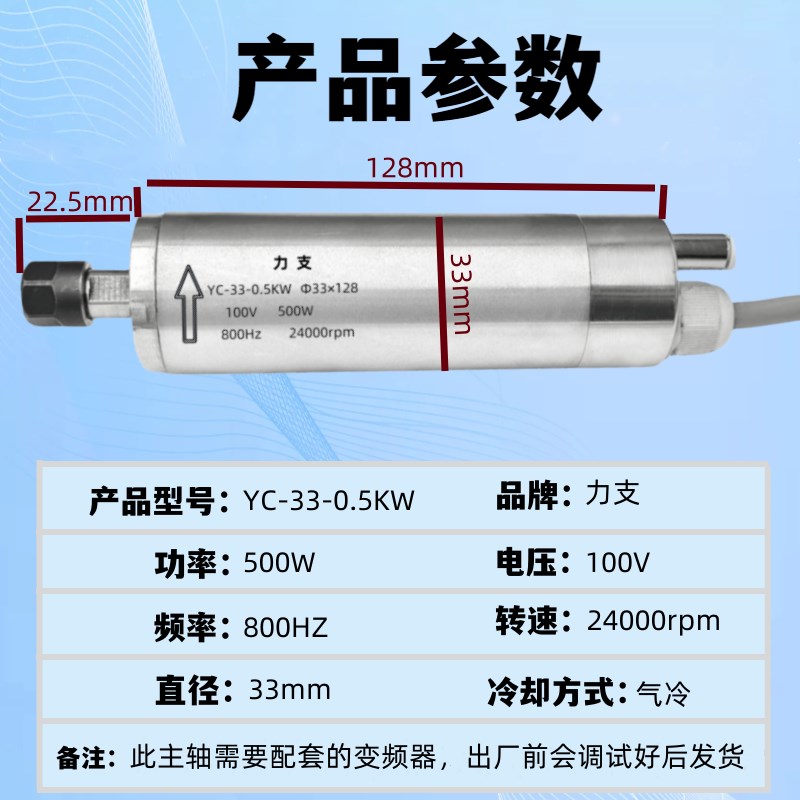 高速微型主轴电机500W33直径电主轴电机高速电T主轴永磁同步电