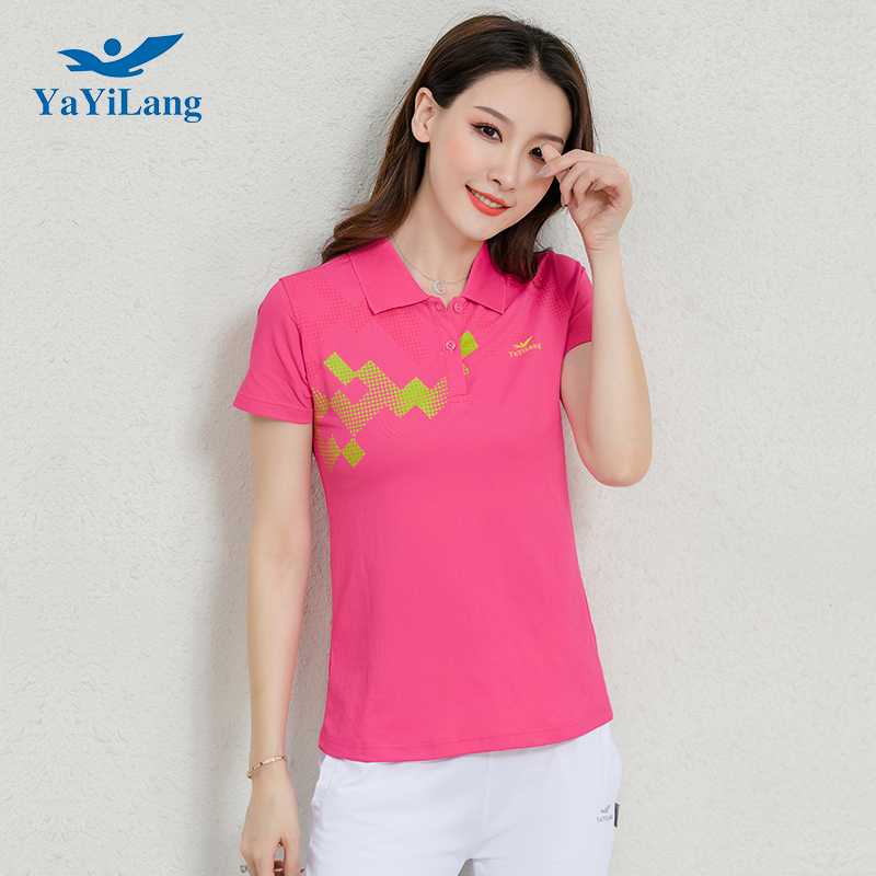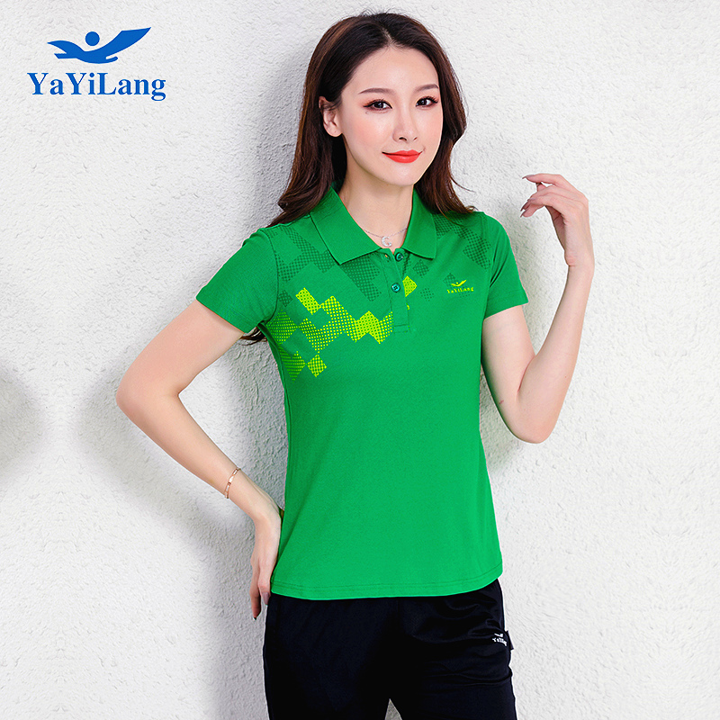 2024夏季运动短袖t恤女士 中年大码上衣翻领透气polo衫活动服团购