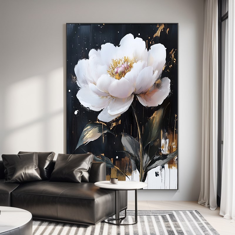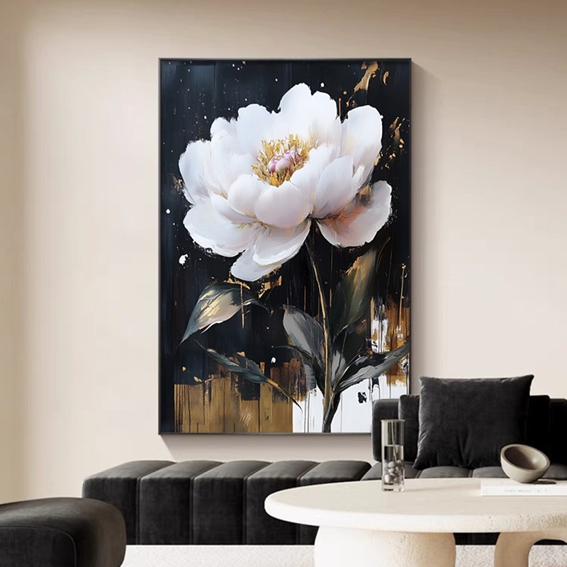 现代简约客厅装饰画2025新款牡丹花卉沙发背景墙壁画玄关走廊挂画