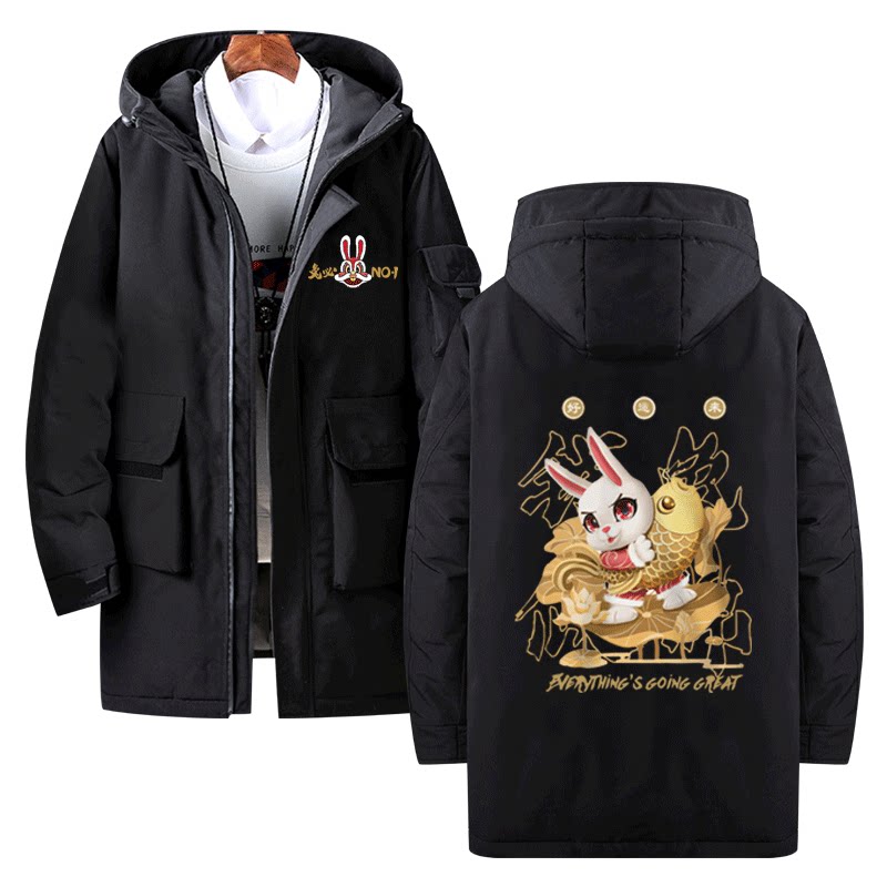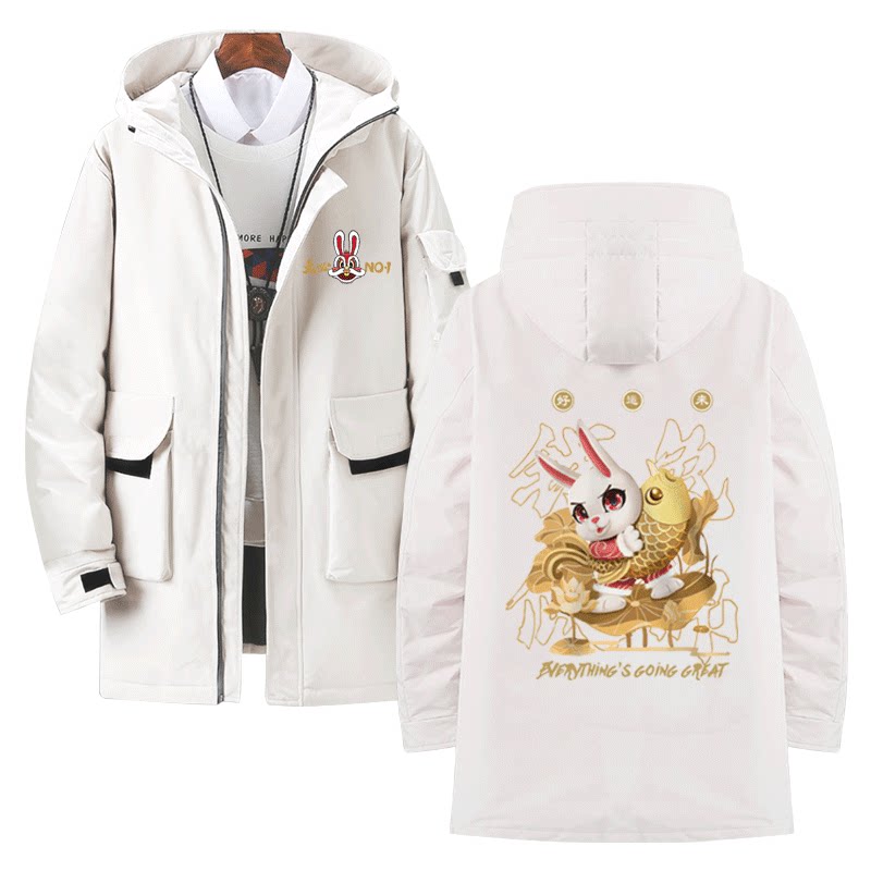 国潮兔年本命年男女情侣装秋冬团体服年会定制工装中长羽绒服外套