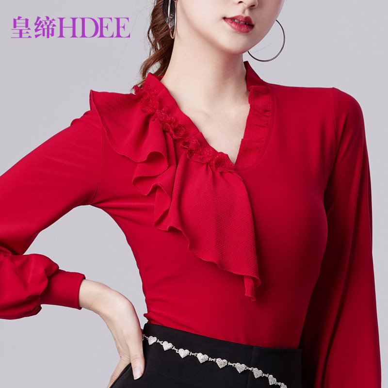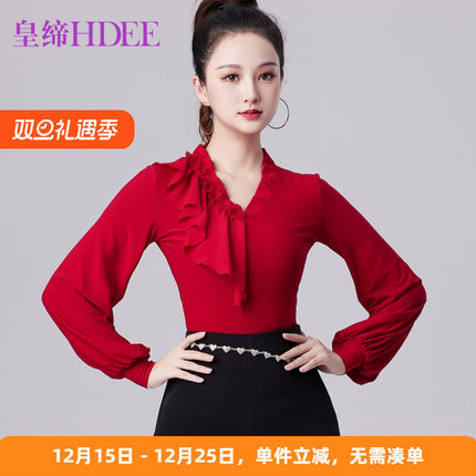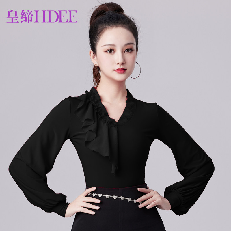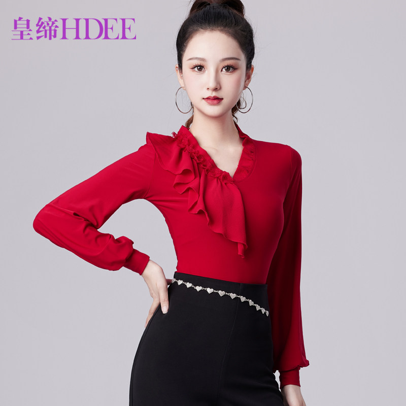 皇缔 拉丁舞新款上衣国标舞交谊舞秋冬款女成人摩登舞练习跳舞服