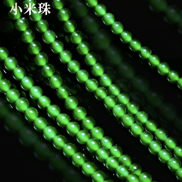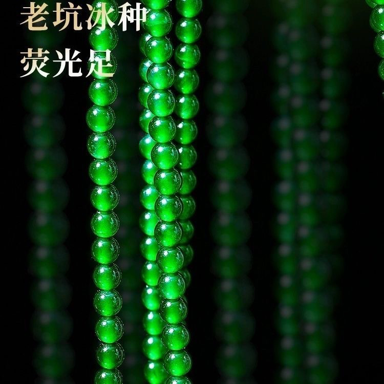 天然缅甸A货翡翠高冰透正阳绿翡翠4mm精致爆款小米珠三圈手链项链