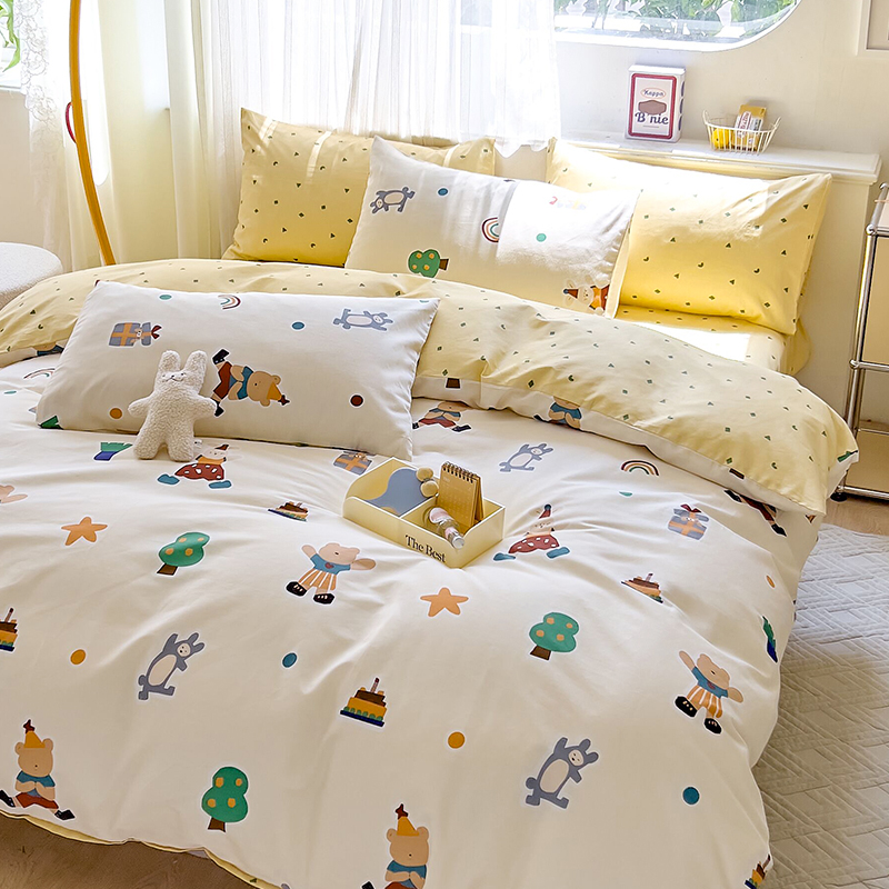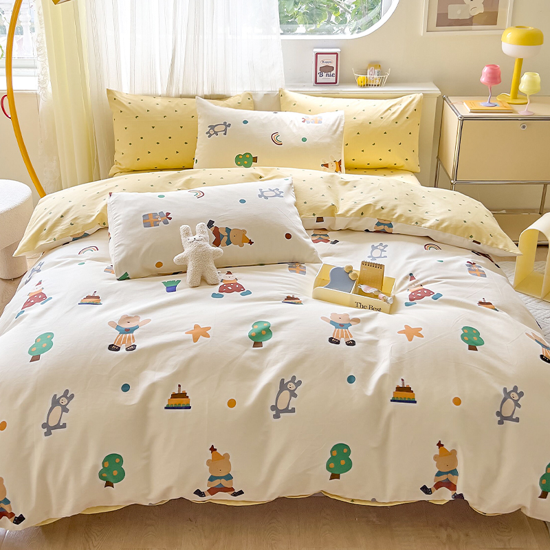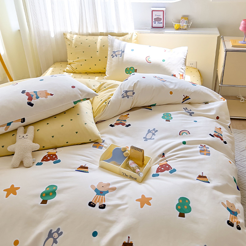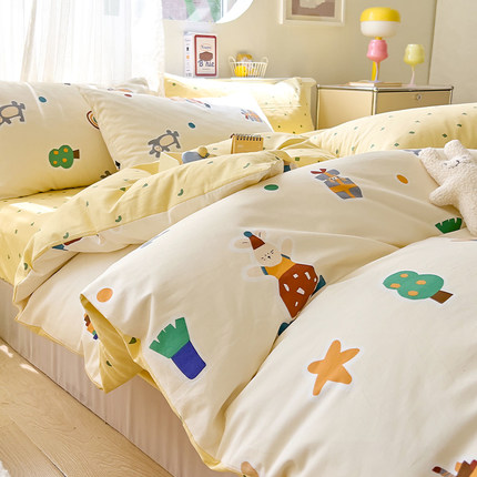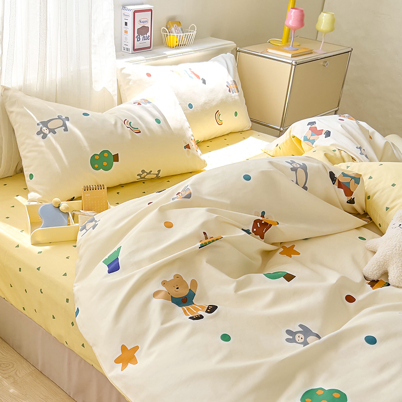 鲁啦啦 儿童活泼卡通纯棉宿舍床单被套四件套定制床笠床罩床上用