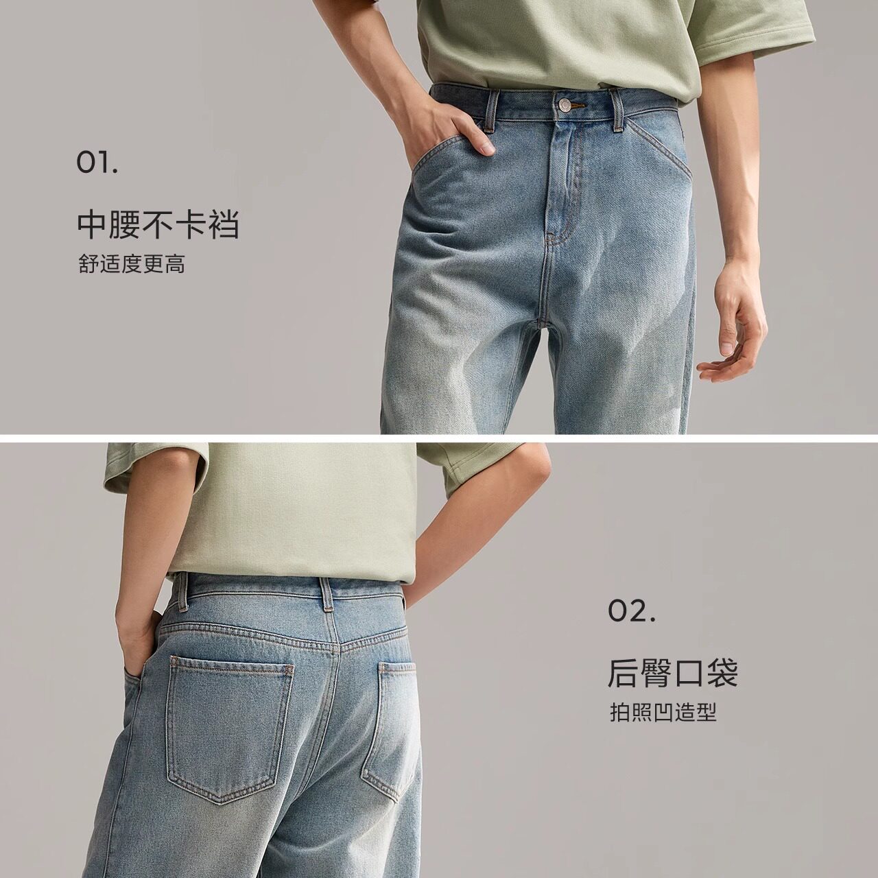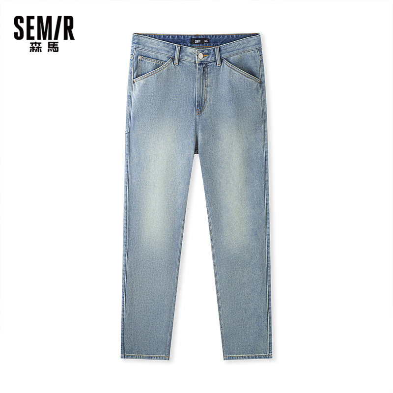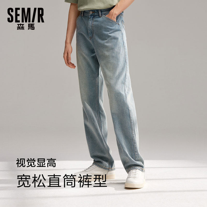 森马牛仔裤男宽松浅蓝色直筒裤