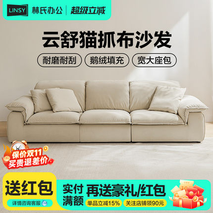 林氏家居现代简约猫抓布艺沙发客厅新款三人家具林氏木业政府补贴