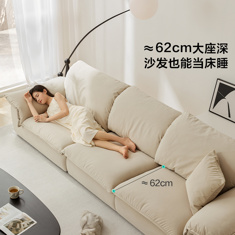 林氏家居现代简约绒布艺沙发直排
