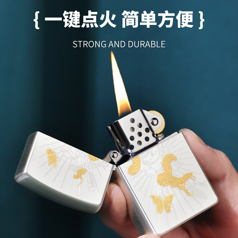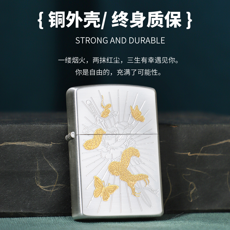 ZORRO佐罗官方旗舰店正品煤油打火机防风灵蛇玫瑰简约送男友礼物