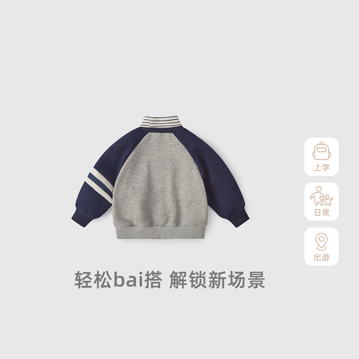 [抗菌远红外]儿童卫衣男宝秋冬时尚撞色套头高领加绒上衣男童秋装