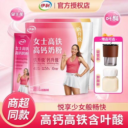 伊利女士高铁高钙奶粉成人大学生女生高蛋白气血牛奶养旗舰店补