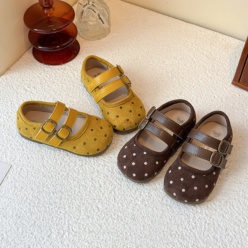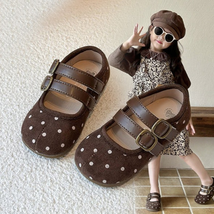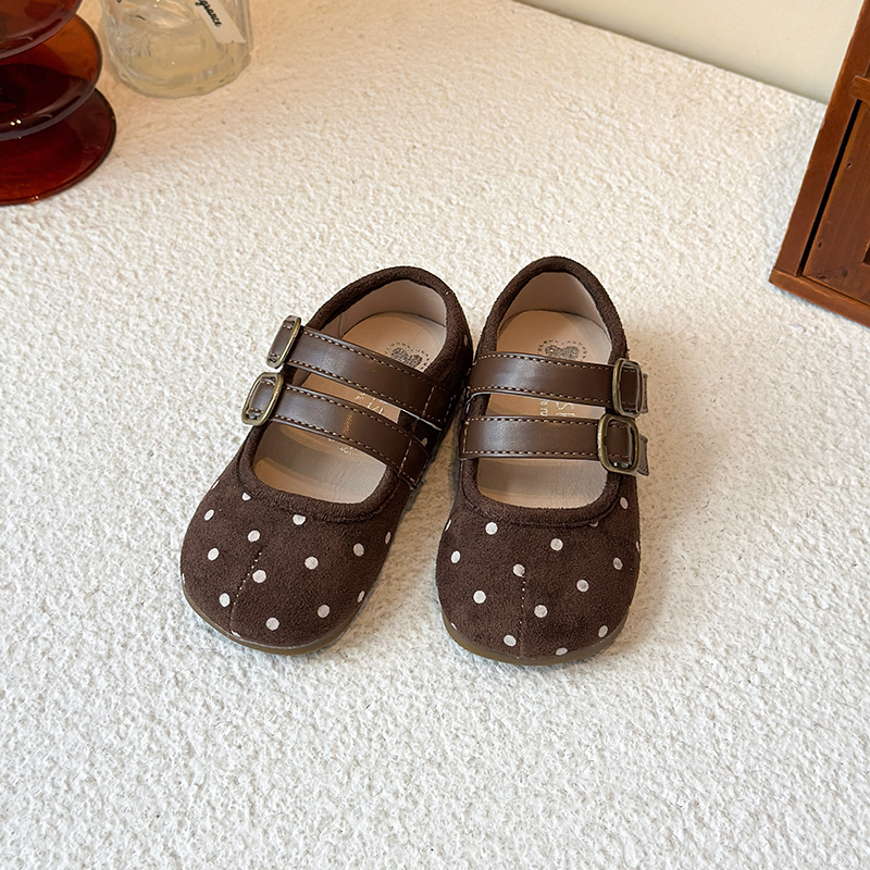 春秋女童皮鞋波点洋气勃肯鞋软底