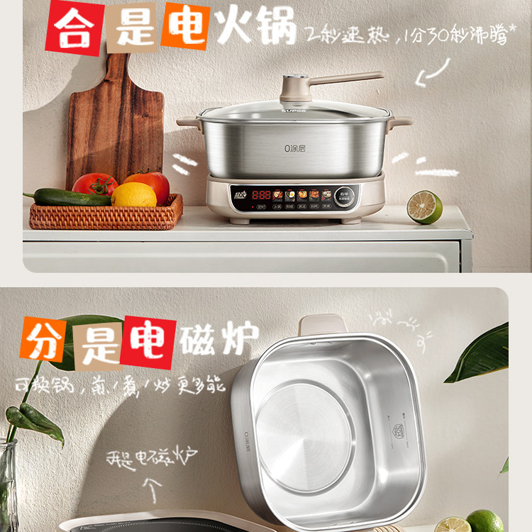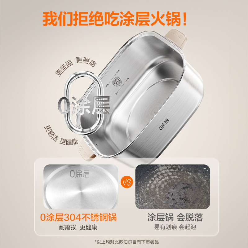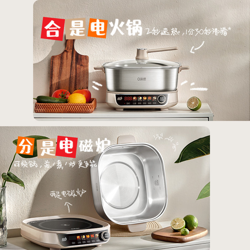 苏泊尔电火锅家用可分体0涂层不锈钢IH猛火速沸多功能智能电磁炉