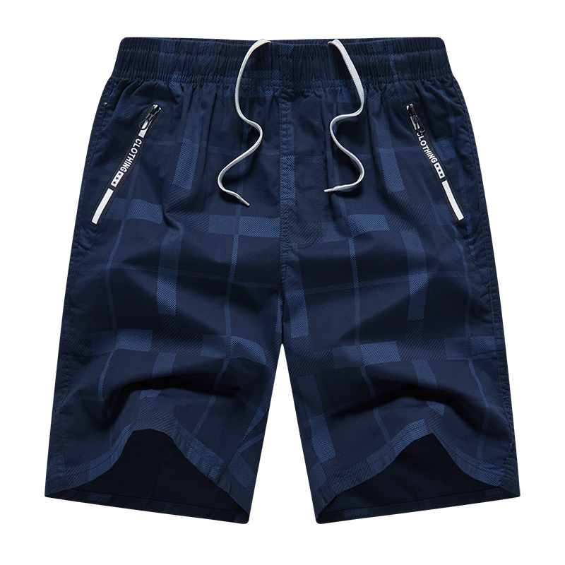 格子休闲短裤男宽松五分裤夏季薄款沙滩裤潮流直筒纯棉5分中裤子
