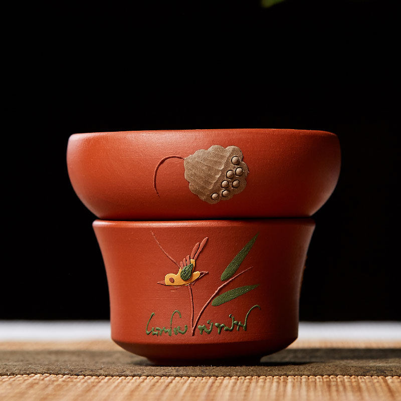 宜兴泥绘紫砂品杯主人杯公杯茶滤