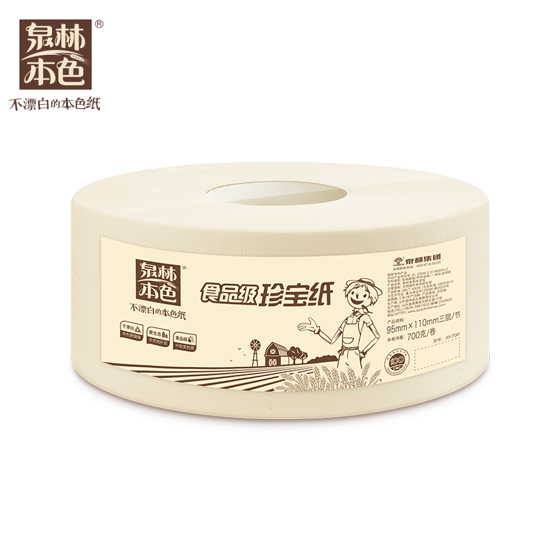 泉林本色大盘卷纸 卷筒纸 公厕纸 卫生纸 手纸 纸巾700克*12卷