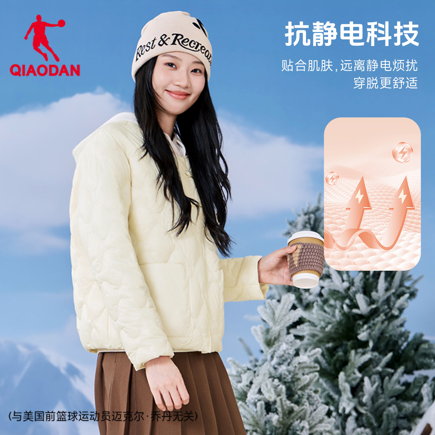乔丹轻薄款羽绒服女士2025冬季新款抗静电保暖棒球领夹克外套服装