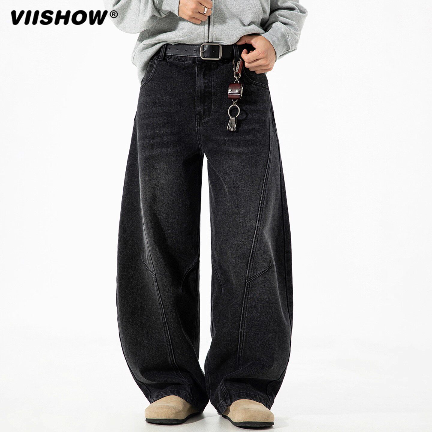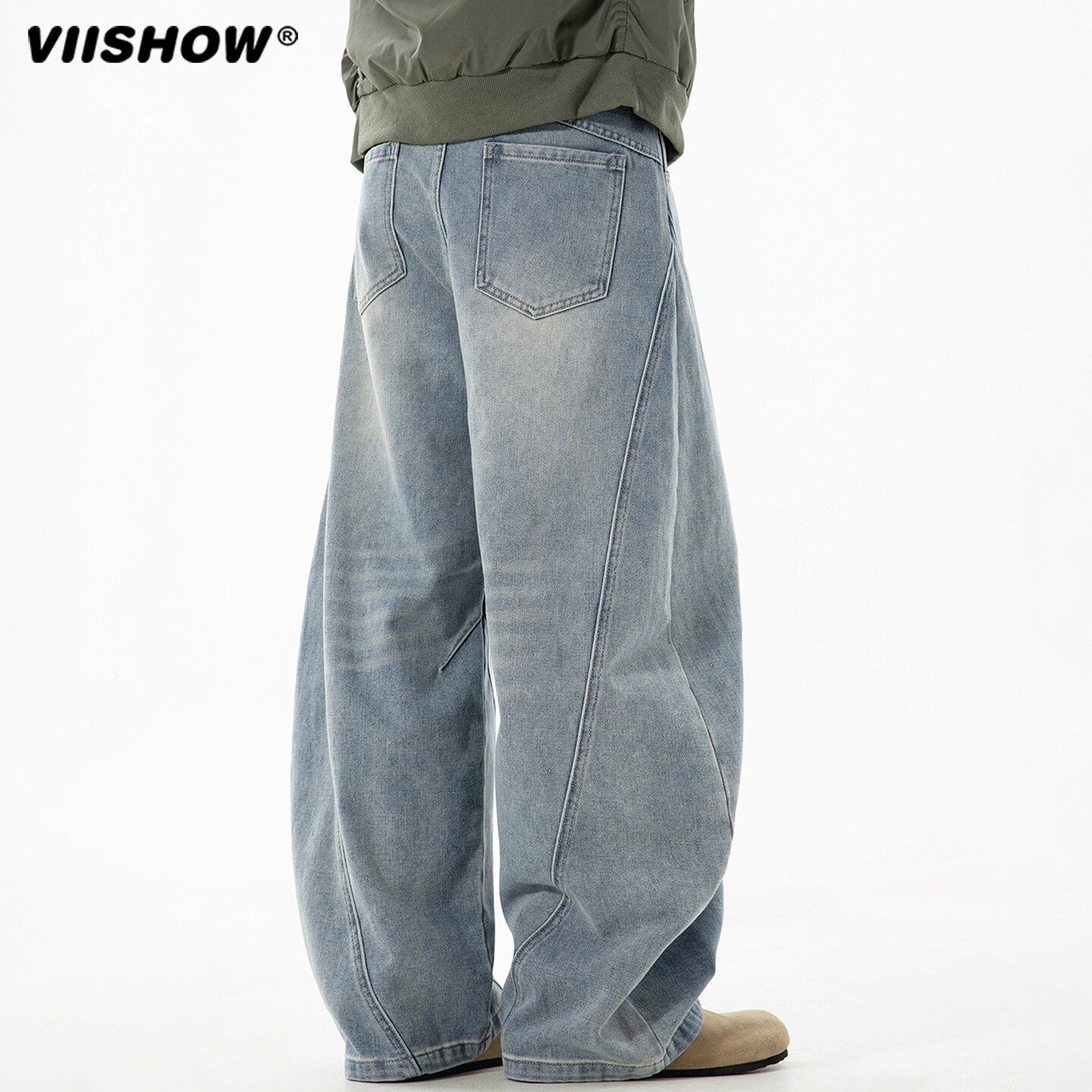 VIISHOW美式弯刀牛仔裤男秋季水洗复古工装阔腿长裤潮牌做旧裤子