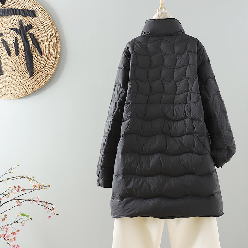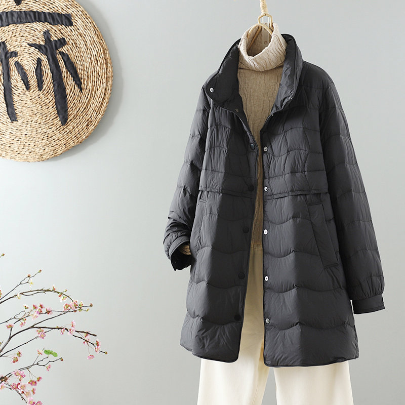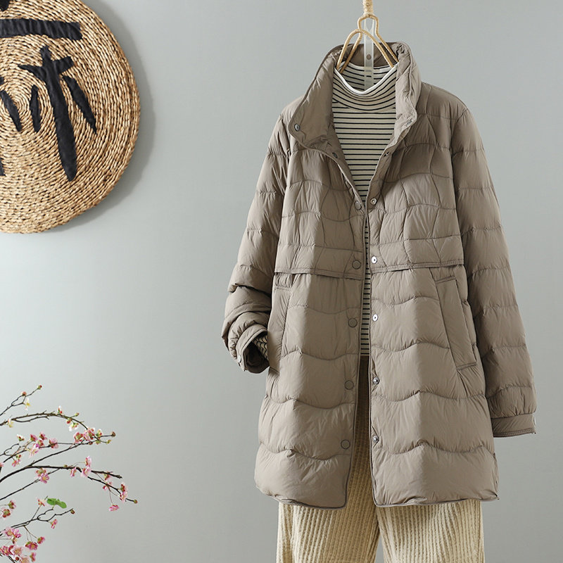 中长款轻薄羽绒服女装冬季新款韩版立领90白鸭绒时尚宽松保暖外套