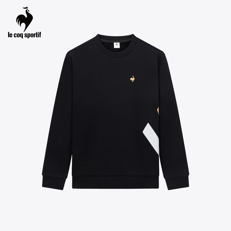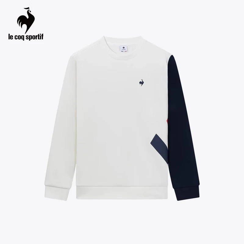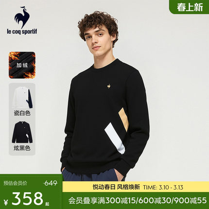 乐卡克法国公鸡秋冬季男子圆领加绒卫衣弹力撞色潮流休闲套头衫