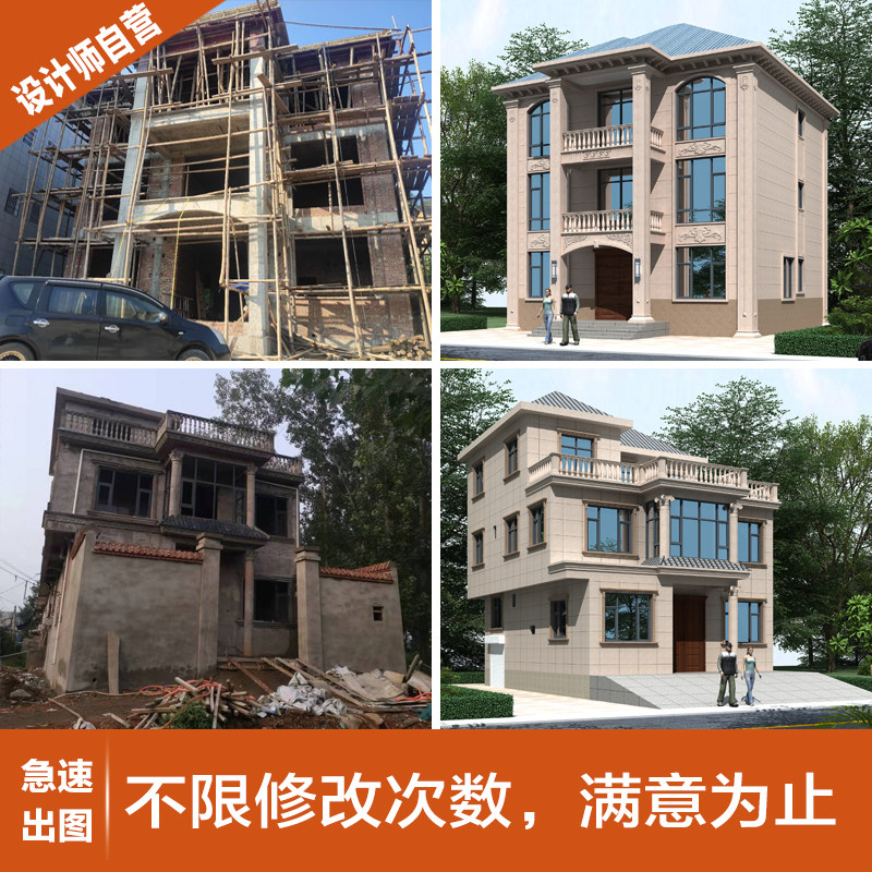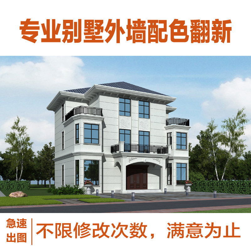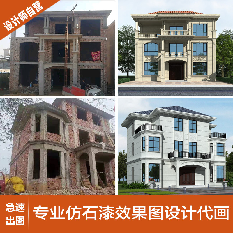 别墅建筑外墙仿石漆配色装修农村自建房外观翻新效果图3D设计制作