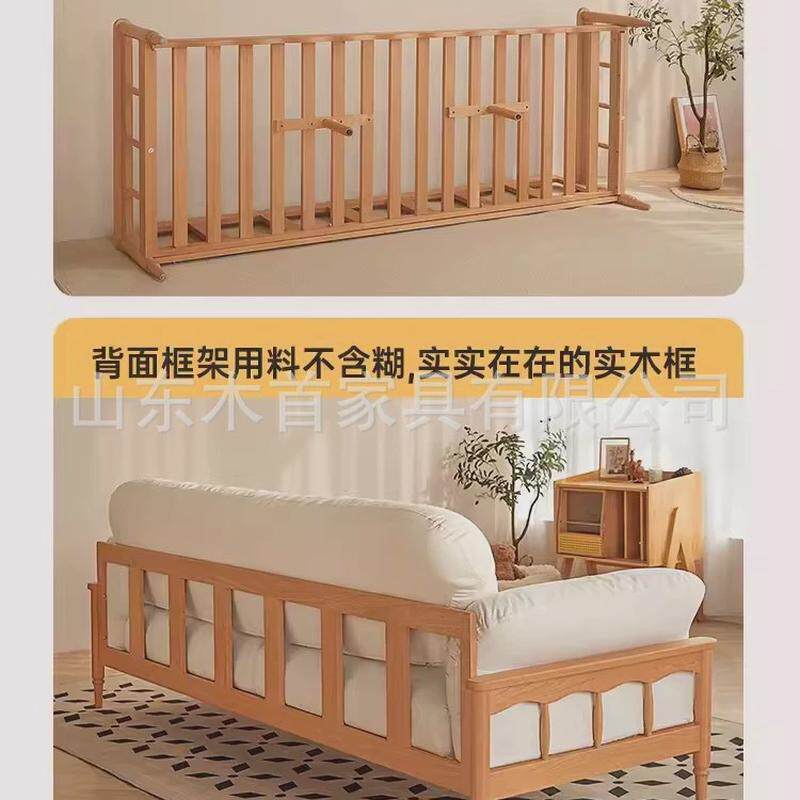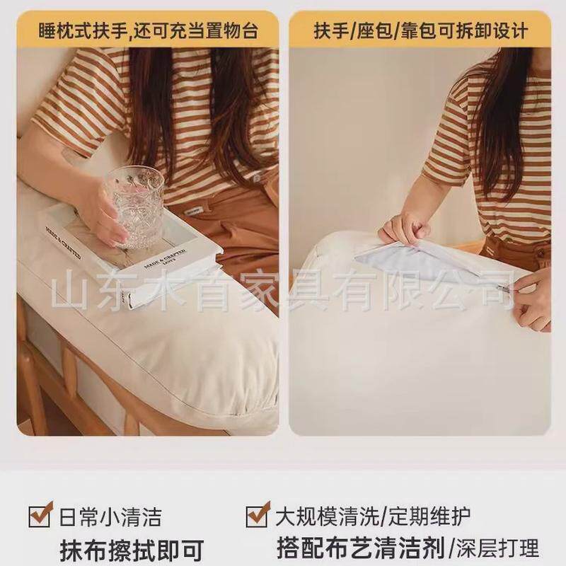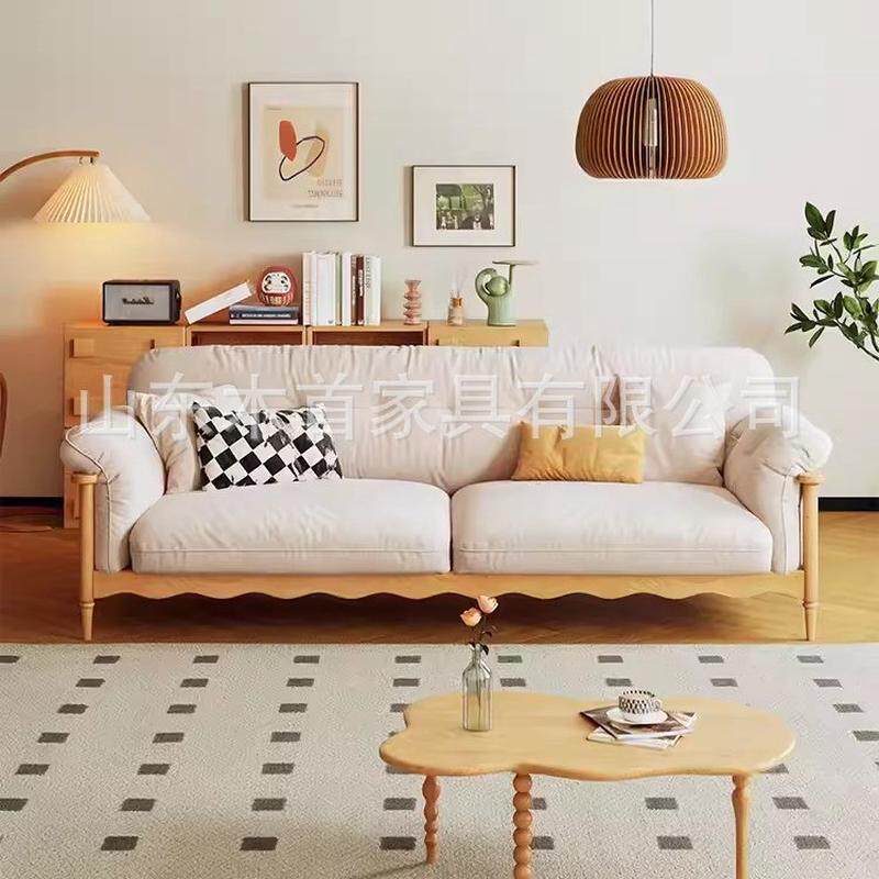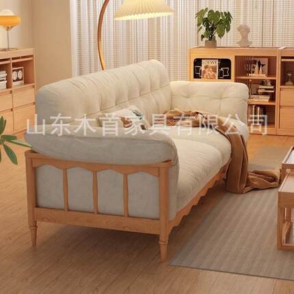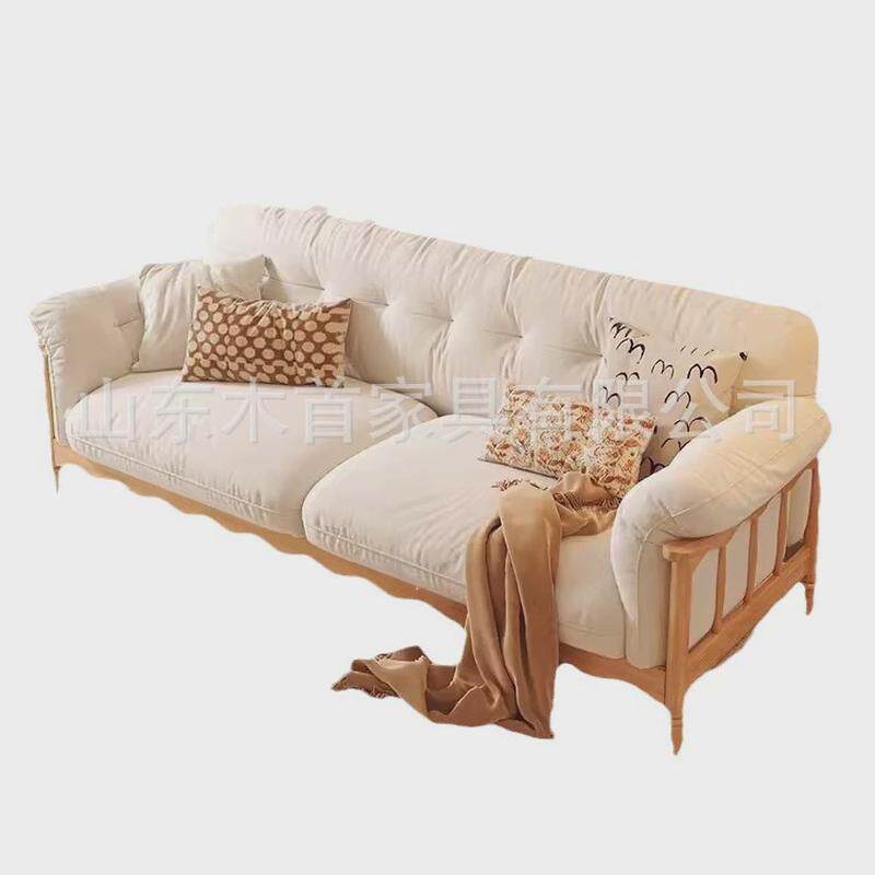 原木风云朵沙发客厅小户型三人位简约现代日式实木布艺沙发奶油风
