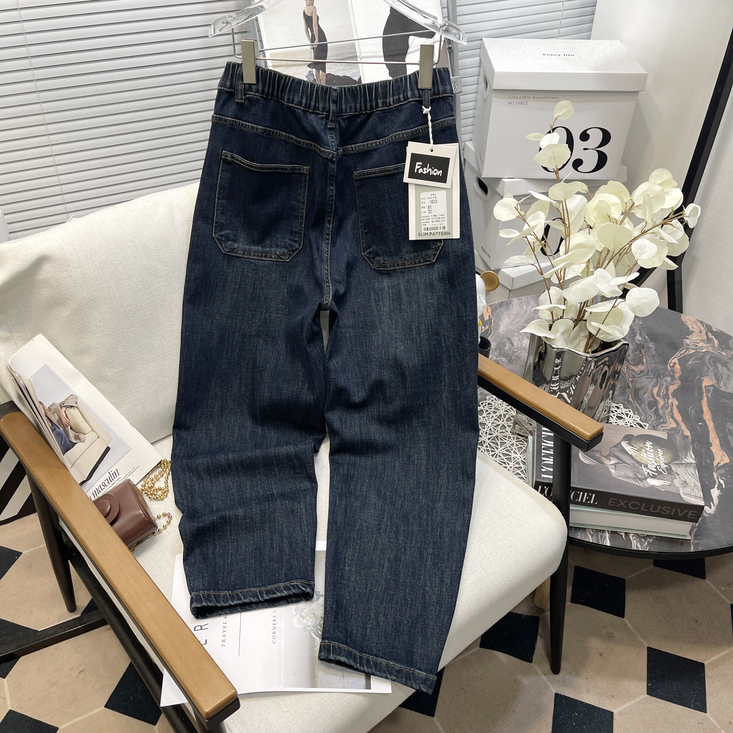 胡子叔大码女装秋季新款深蓝哈伦牛仔裤女高腰胖mm宽松怀旧老爹裤