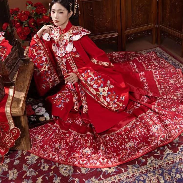 原创【红染】重工刺绣花嫁明制婚服马面裙汉服女立领衫云肩秋