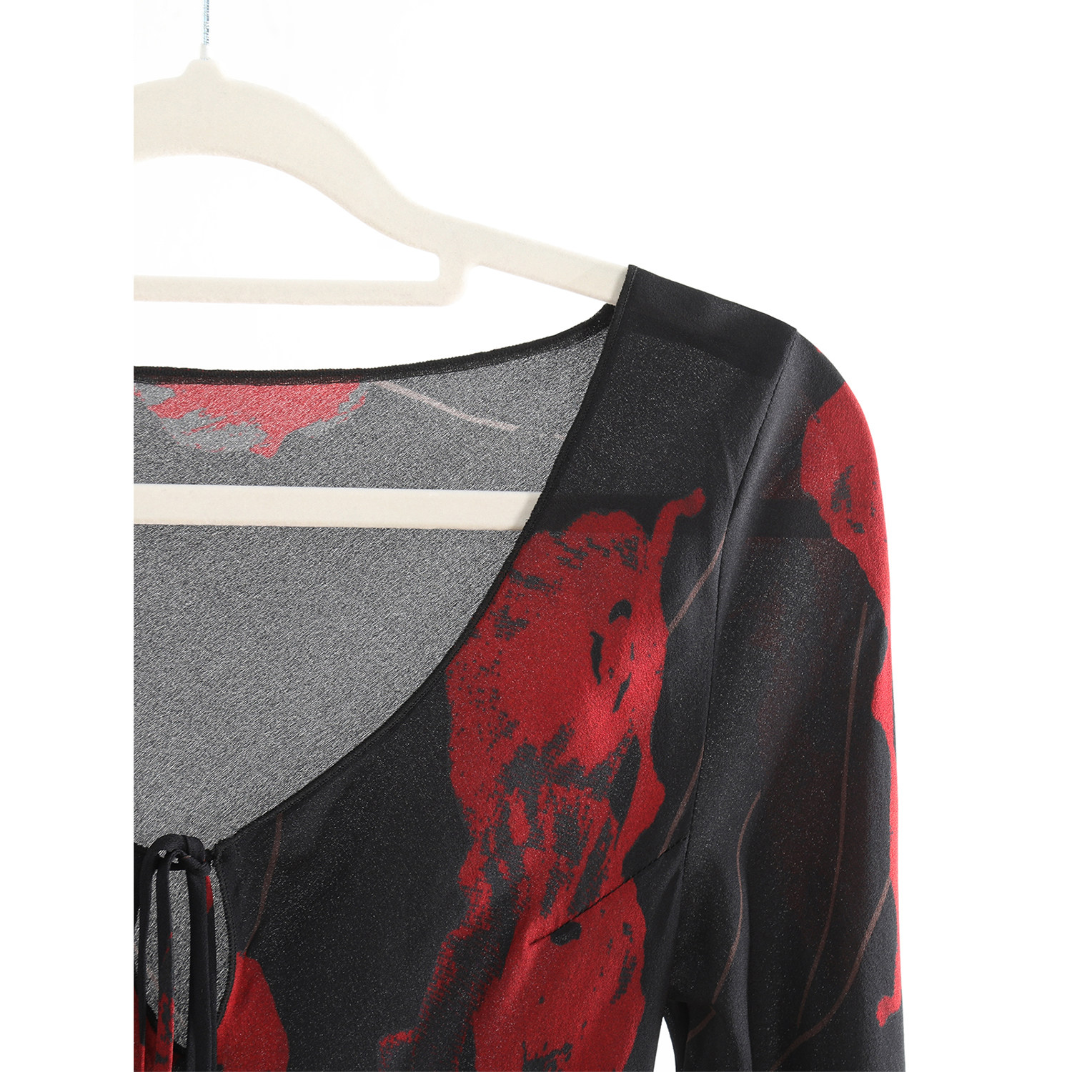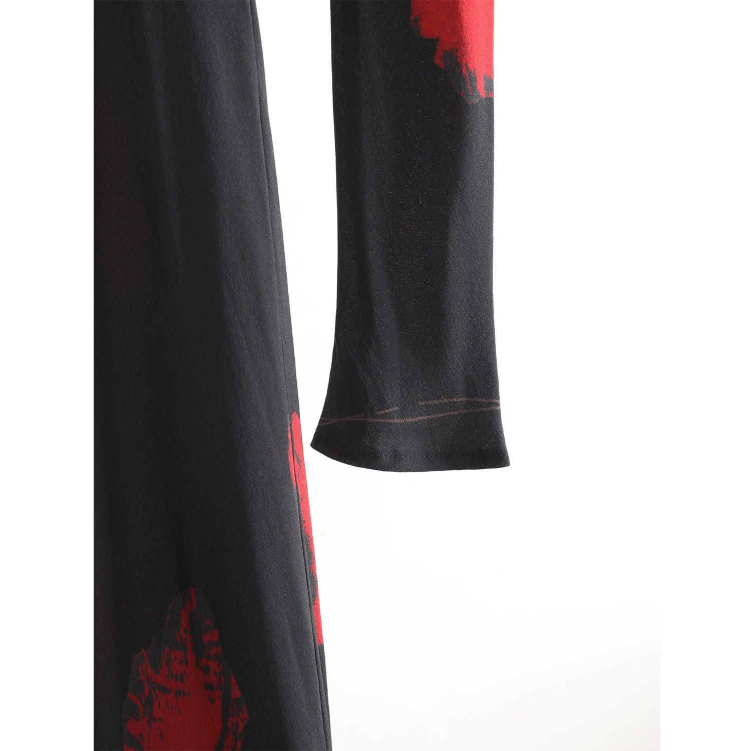 法式复古轻奢小众100%桑蚕丝真丝黑色印花长袖修身优雅连衣裙女