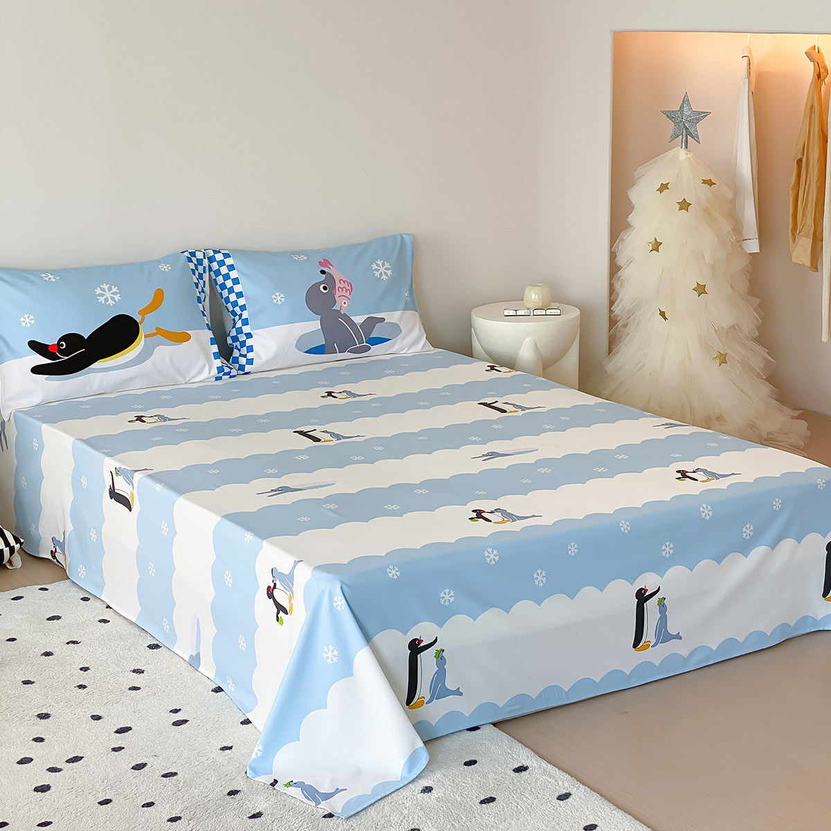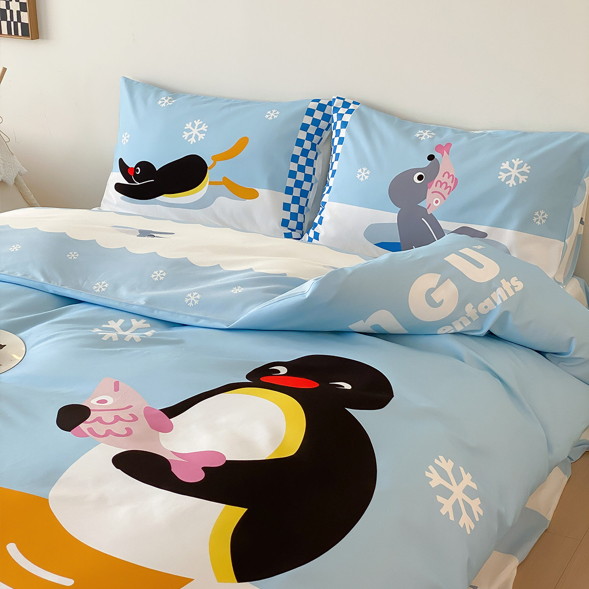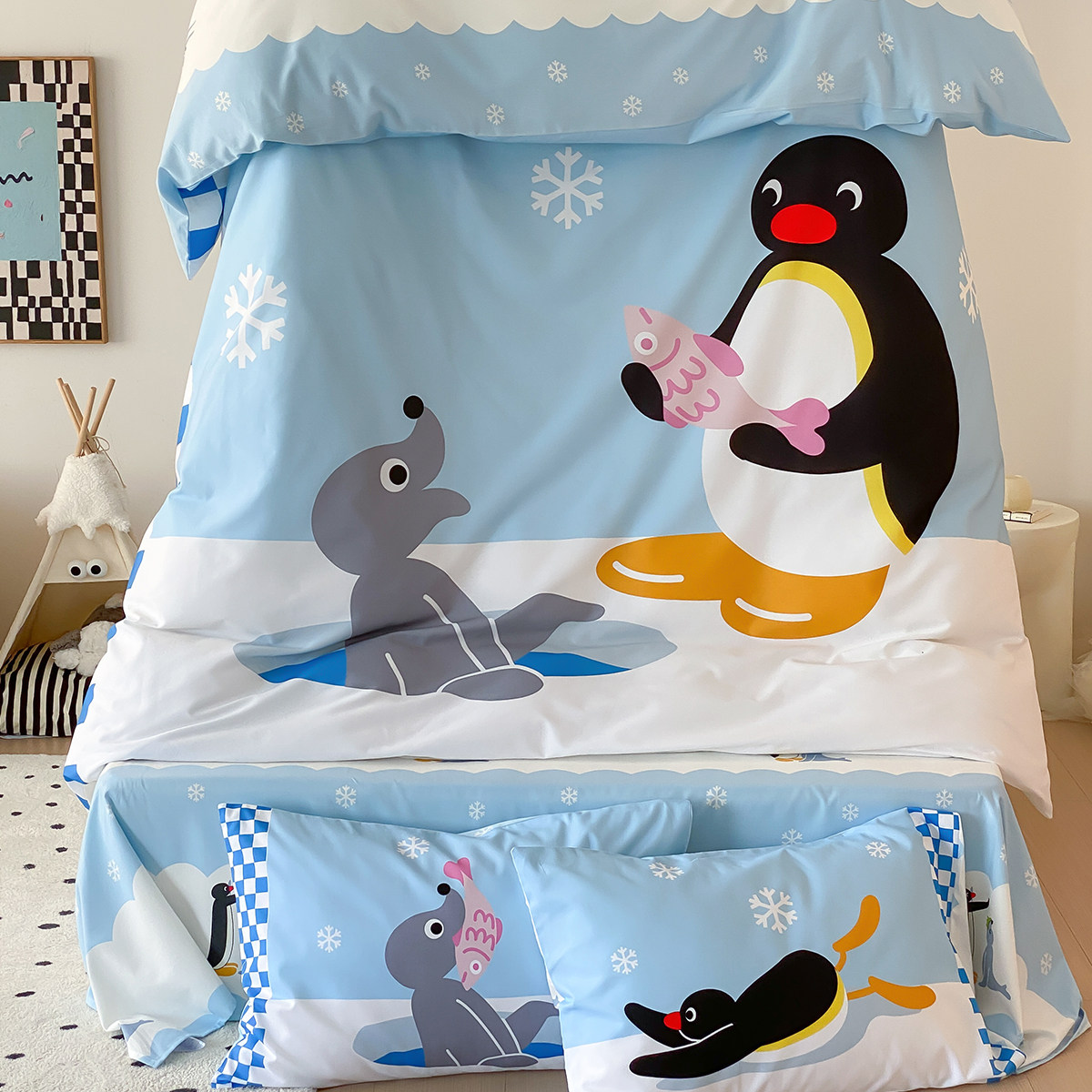 富山商店 x Pingu企鹅家族蓝色可爱robby海豹全棉磨毛床上四件套