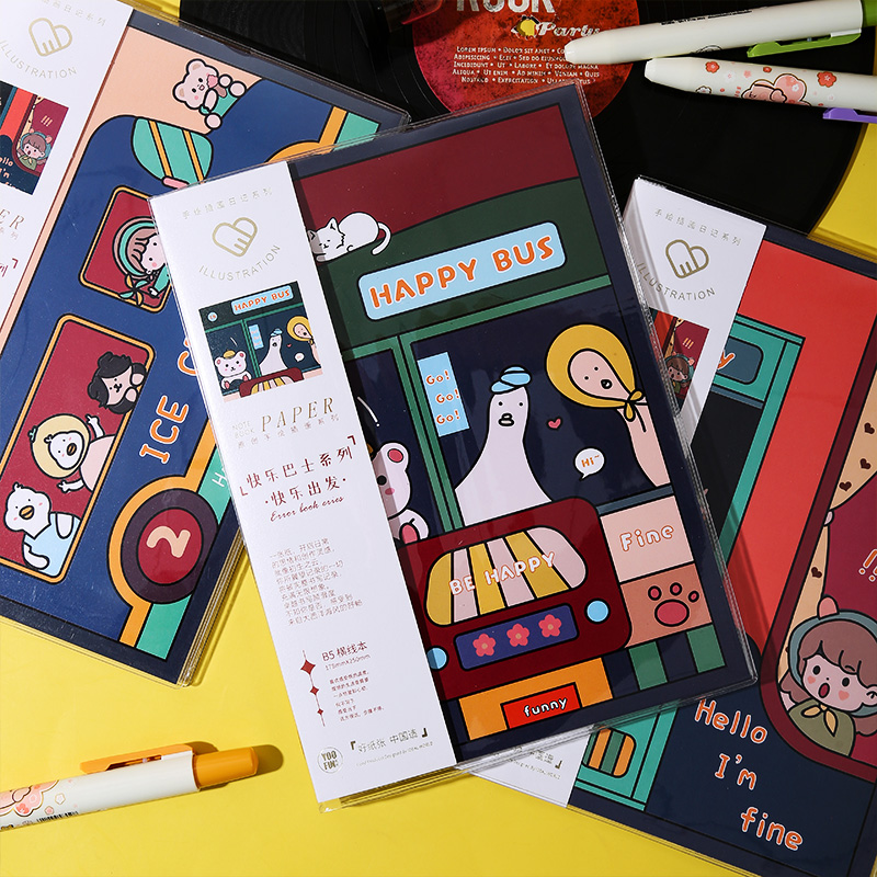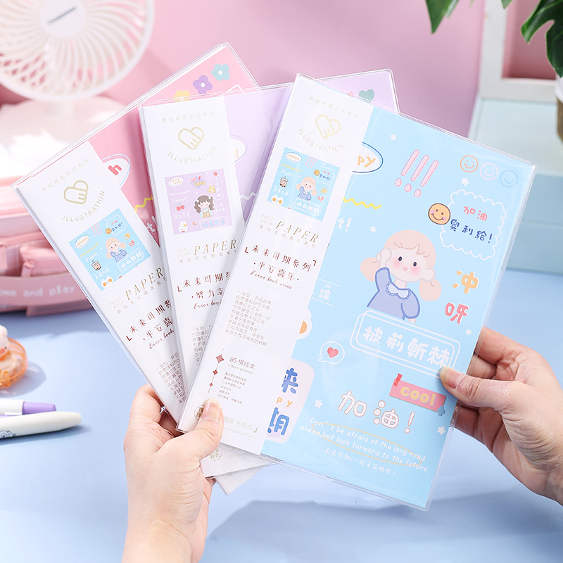 优凡高颜值创意水晶胶套本期刊B5横线手帐本学生笔记本加厚初芸纸透明书衣手绘插画软面抄学生日记本记事本