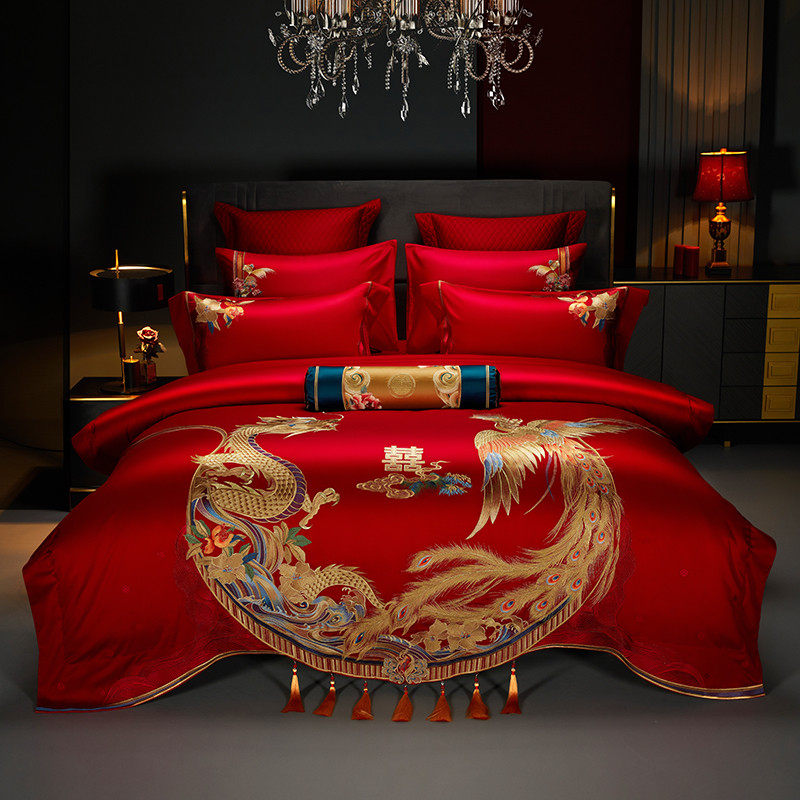 w1tr140s贡缎婚庆四件套大红色结婚婚礼新婚床单被套套件床上