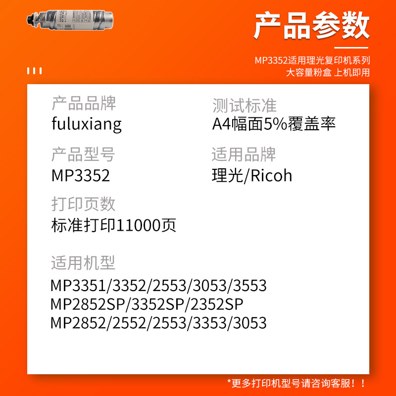 FULUXIANG适用理光MP3352C碳粉MP 3350 2352SP 2852 2852SP粉盒 MP 3352 3352SP 2553SP 3053SP 3353S 墨粉盒