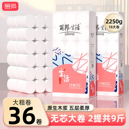 丽邦卷纸36卷4500g家用卫生纸实惠装纸巾无芯卷筒纸厕纸厕所手纸