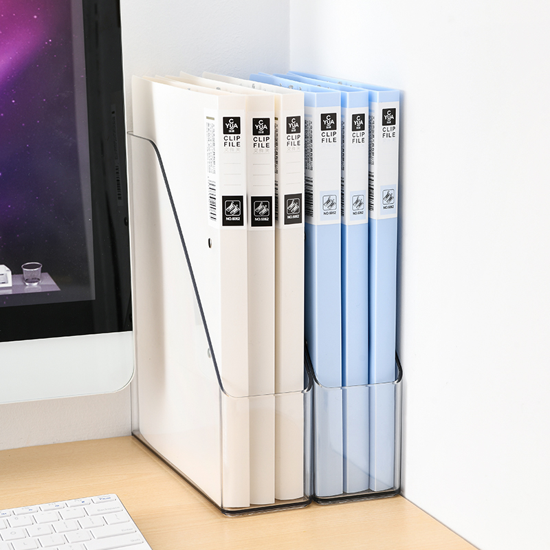 透明加厚办公桌文件夹收纳架书立架书桌面学生资料整理筐办公用品