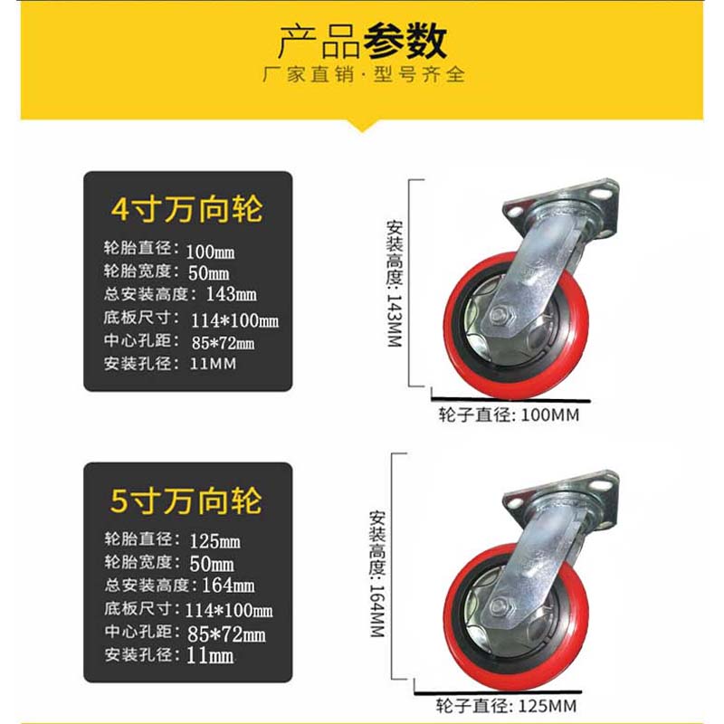 热销6寸重型聚氨酯万向轮枣红4寸平板手推车脚轮5寸货架8寸工业轮