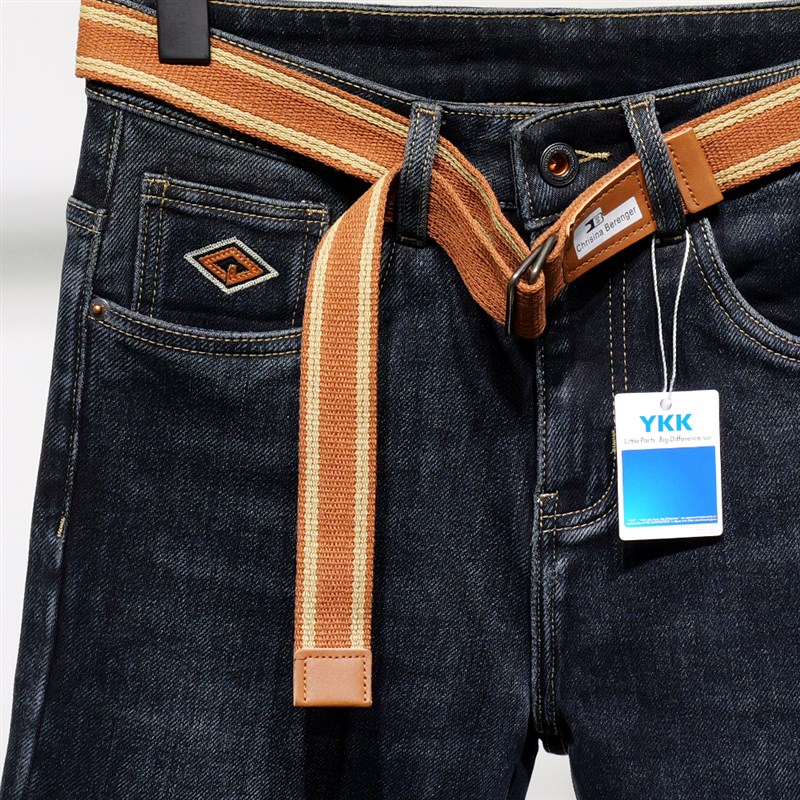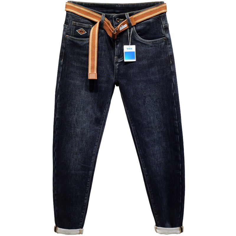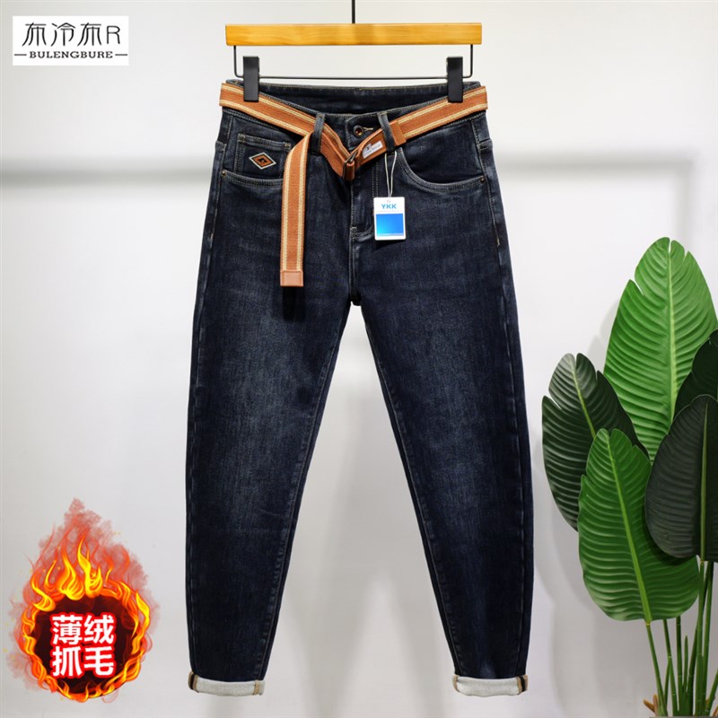 布冷布热 蓝黑色薄绒牛仔裤男加绒磨毛保暖小脚修身厚款秋冬长裤