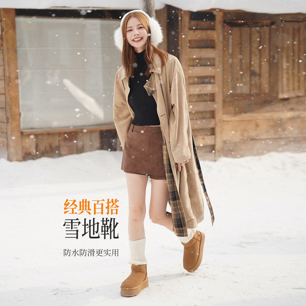 骆驼雪地靴女2025新款冬季加绒保暖棉鞋短靴厚底防滑防水东北棉靴