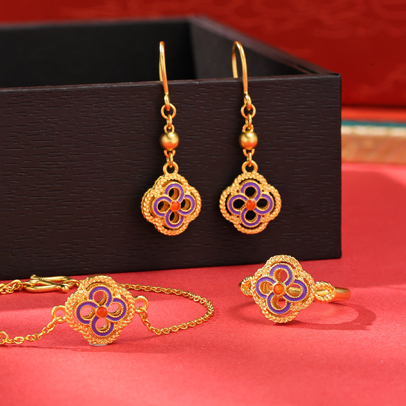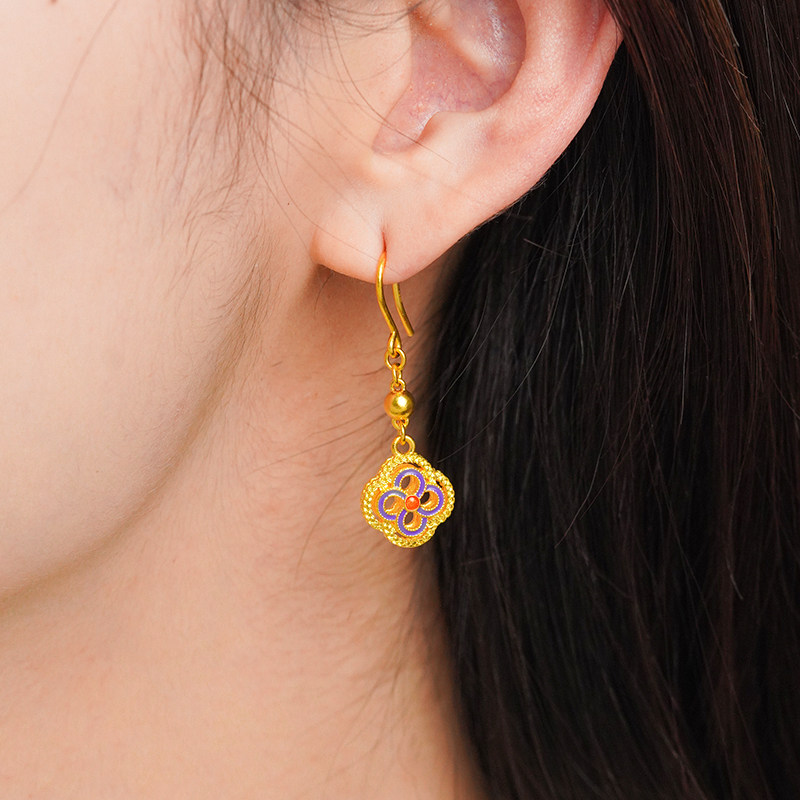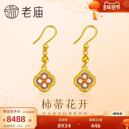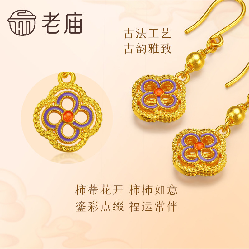 老庙黄金足金柿蒂花耳坠复古鎏彩气质柿柿如意古法工艺轻奢时尚