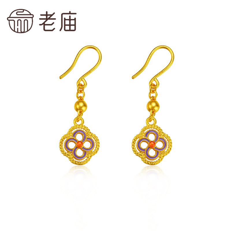 老庙黄金足金柿蒂花耳坠