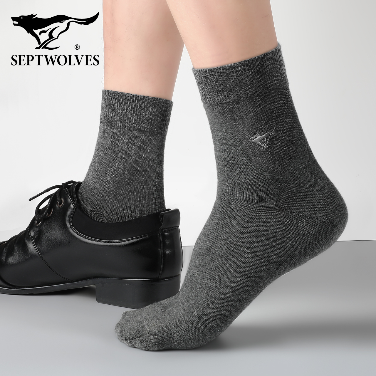 七匹狼袜子男士纯棉中筒袜吸汗防臭100%全棉商务男袜短袜春夏长袜