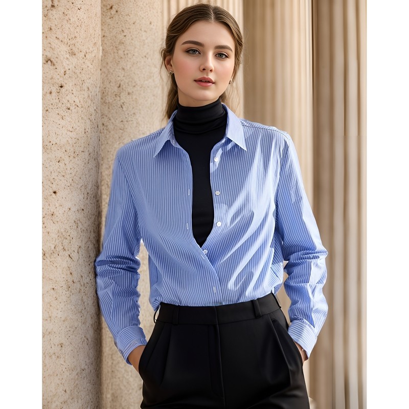 纯棉衬衫女蓝白条纹长袖加绒春秋新款轻奢高级感上衣法式气质衬衣