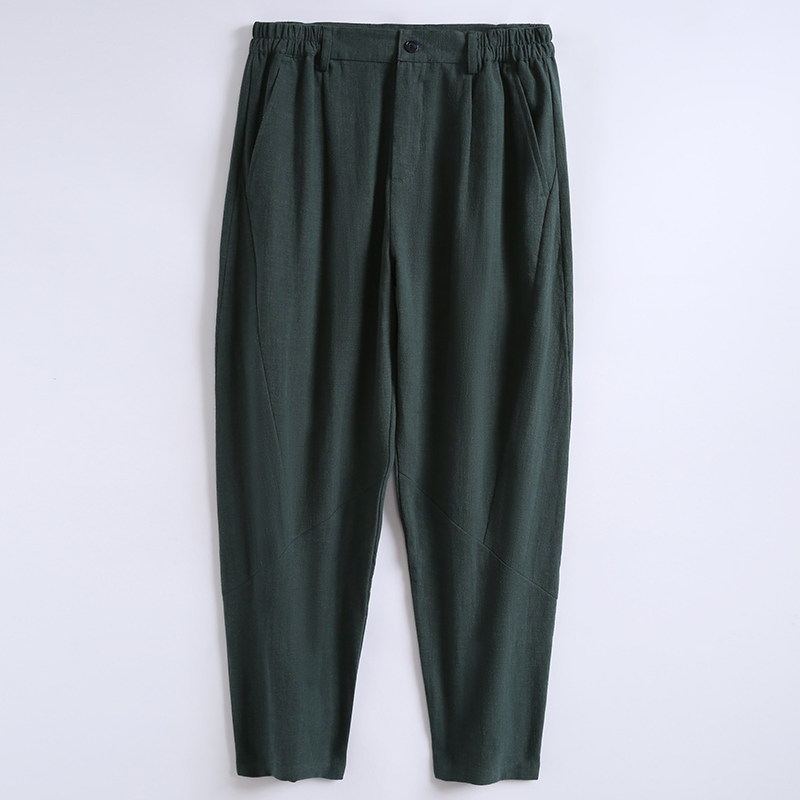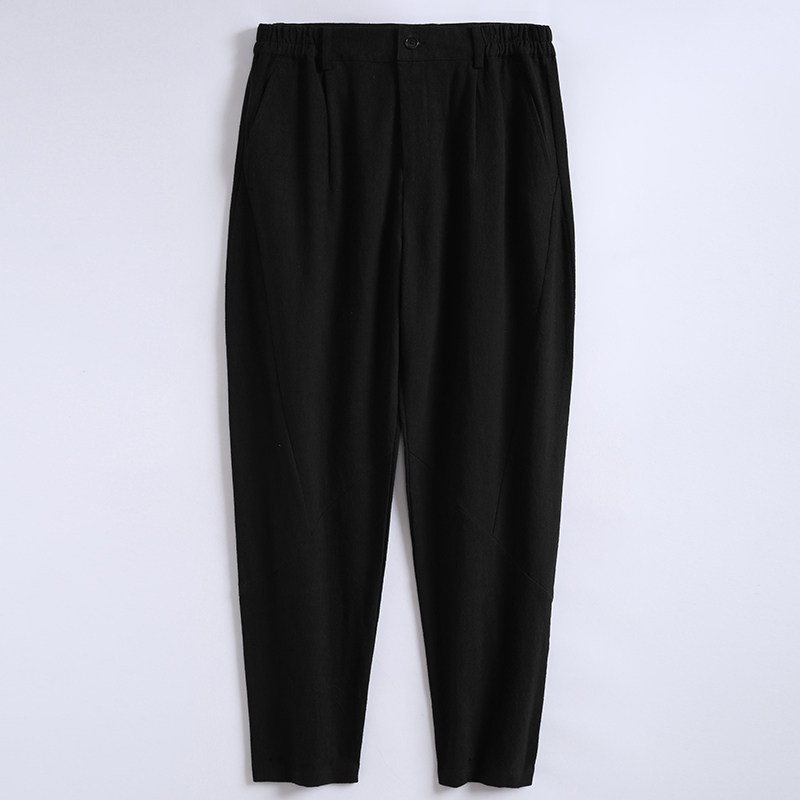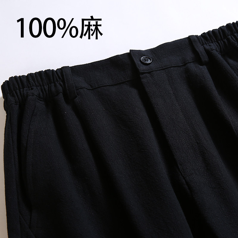 玄笙中国风麻裤男春秋季苎麻休闲裤宽松小脚哈伦裤麻料长裤男