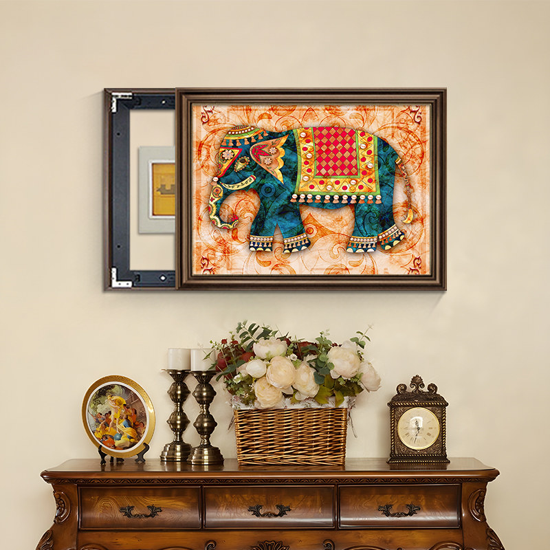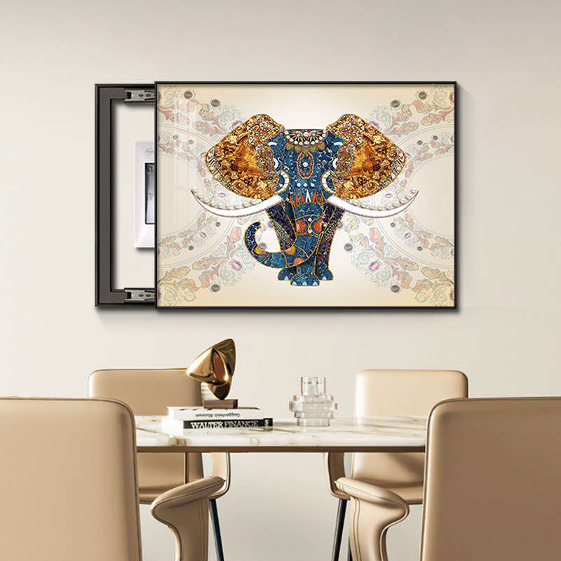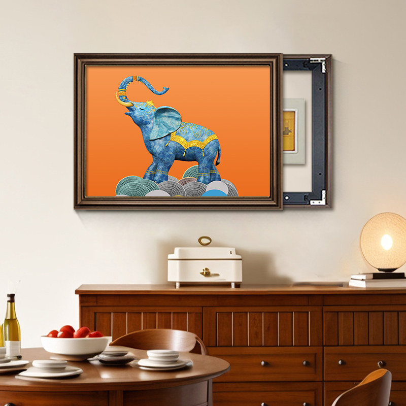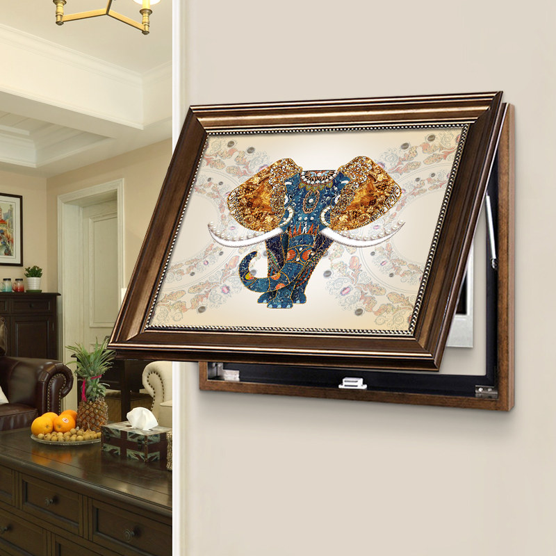 美式电表箱装饰画免打孔配电箱遮挡挂画空开箱电闸盒盖板大象壁画