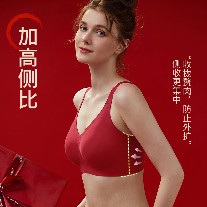 红色内衣大胸显小胸结婚新娘文胸套装礼盒本命年喜庆内衣内裤