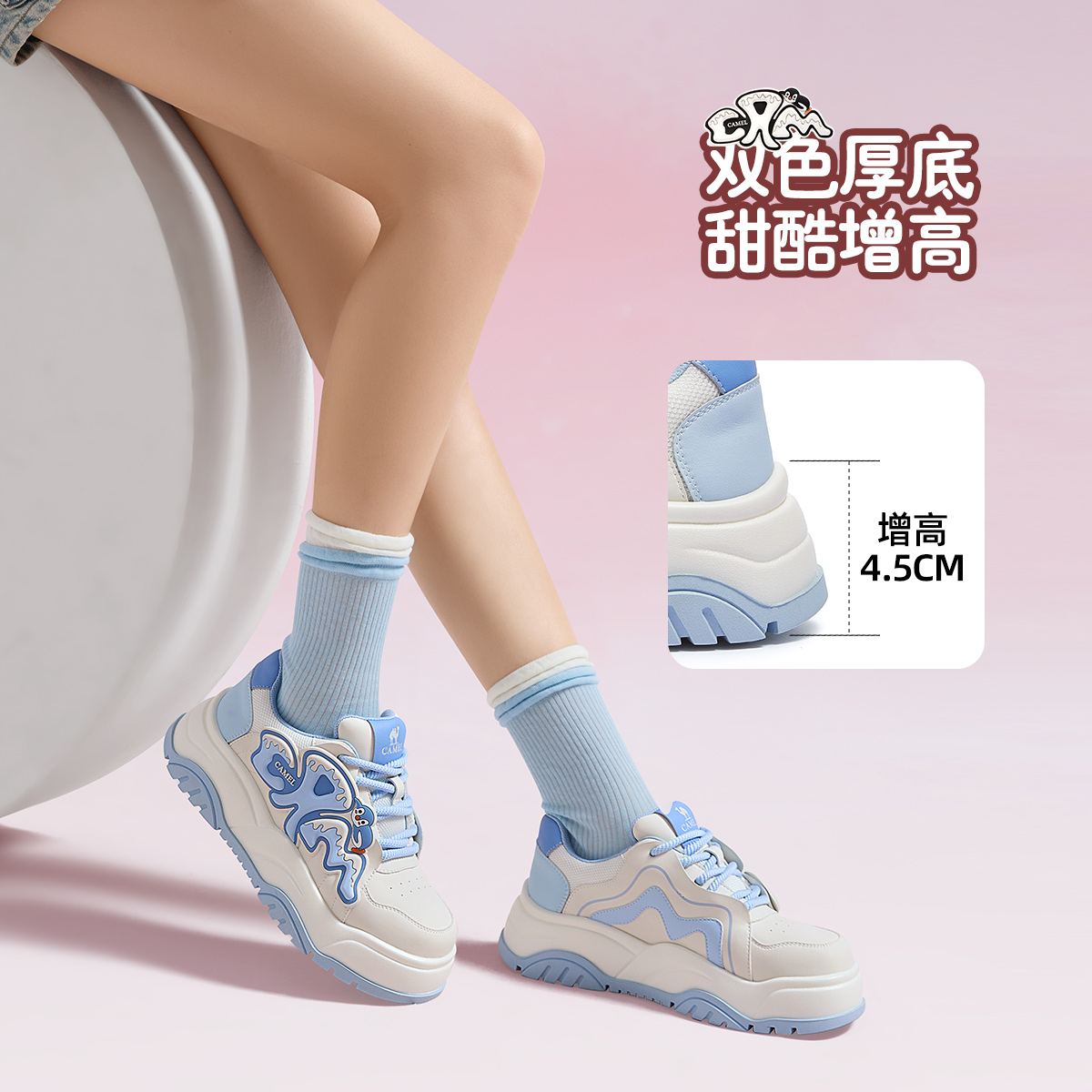 骆驼女鞋2025秋季新款拼色时尚潮流运动休闲鞋户外徒步登山鞋板鞋
